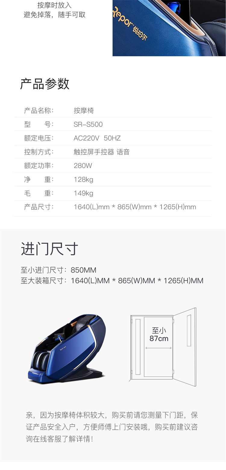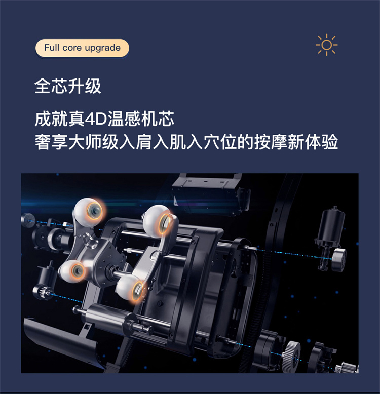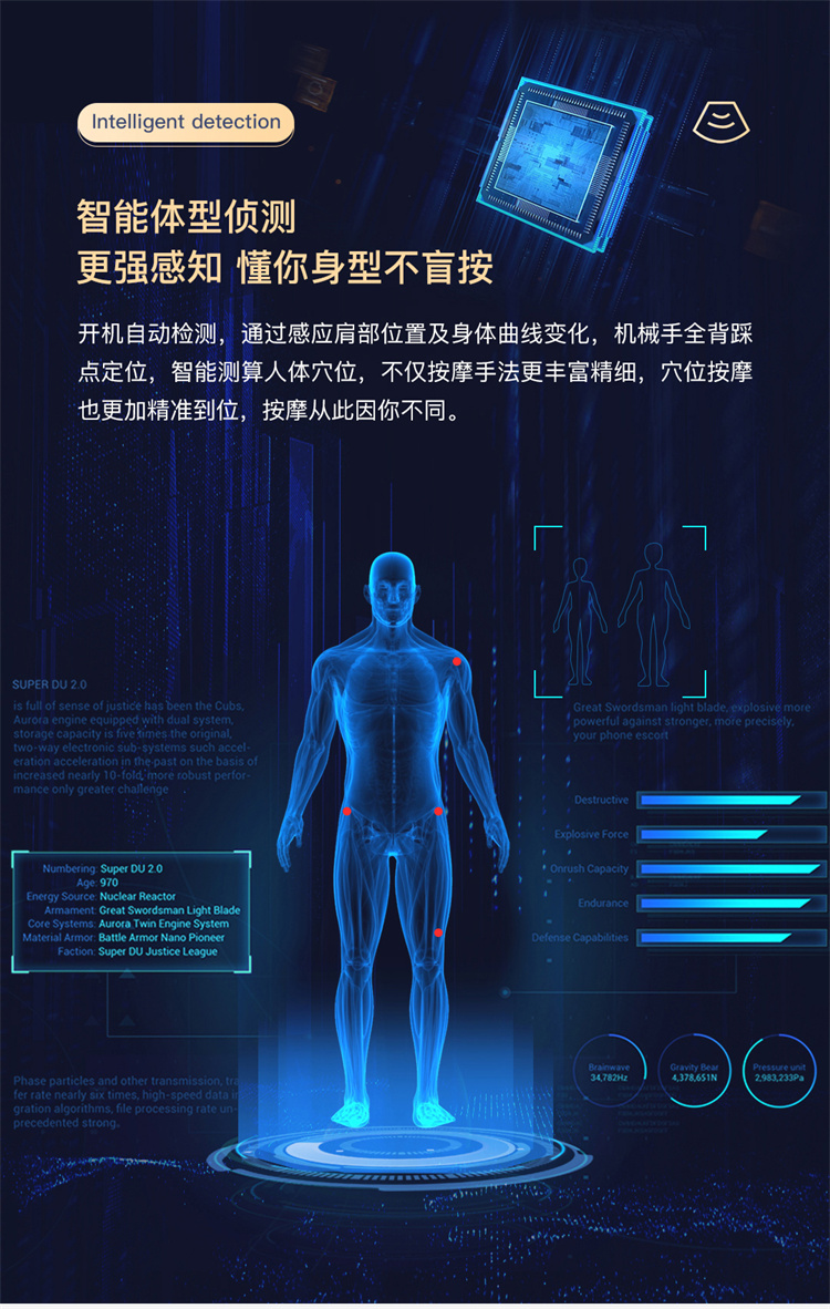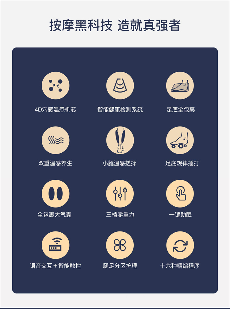 锐珀尔集十余年技术积累,倾力打造锐珀尔新款总裁4D穴感总裁椅S500,拥有全新的AI智能语音,小腿温热揉搓、脚底震动、4D机械手等全新功能创新,智能健康体测,可以检测血氧、心率、微循环等数值,通过大数据分析,给您提供合理的改善方法,时刻关注您的健康状况;超大液晶智能触控,专为总裁量身打造的特色按摩程序,20分钟快速补充精力,多种按摩程序,满足全家人的需求。
