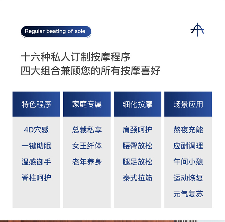 医师级服务:专业程序调校人员针对用户不同时身体状况进行按摩程序定制