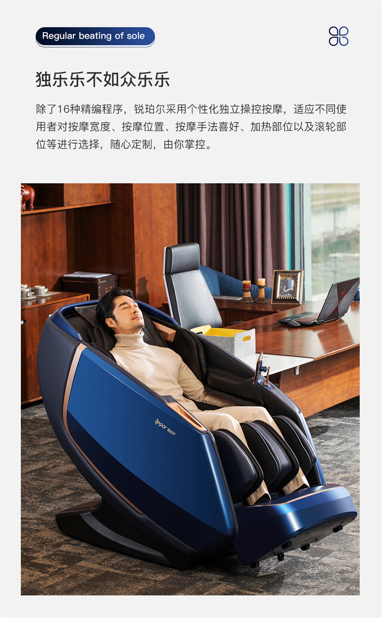 锐珀尔品牌是zoty中欧体育官方网站体育集团旗下的按摩椅品牌,自主研发并生产,全国招商合作。