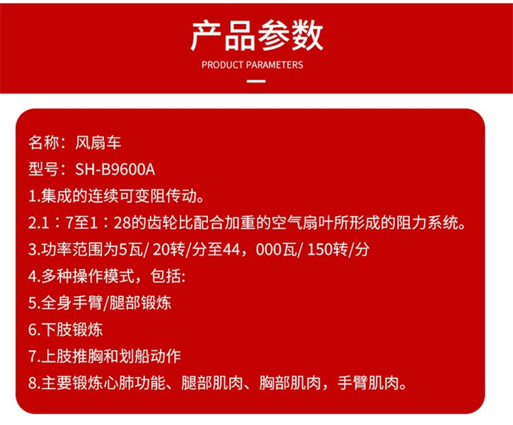 舒华V10商用卧式健身车SH-B9100R(LED版)采用轴承6005ZZ(台湾TPI),步幅曲柄长是170mm,如果换算步距是13.4英寸,具有水壶架和Ipad平板支架、USB充电功能,管座可纵向调整300mm和水平调整50mm,张力旋钮采用电动调整,制作电磁铁阻力,传输系统多沟皮带J型8沟。