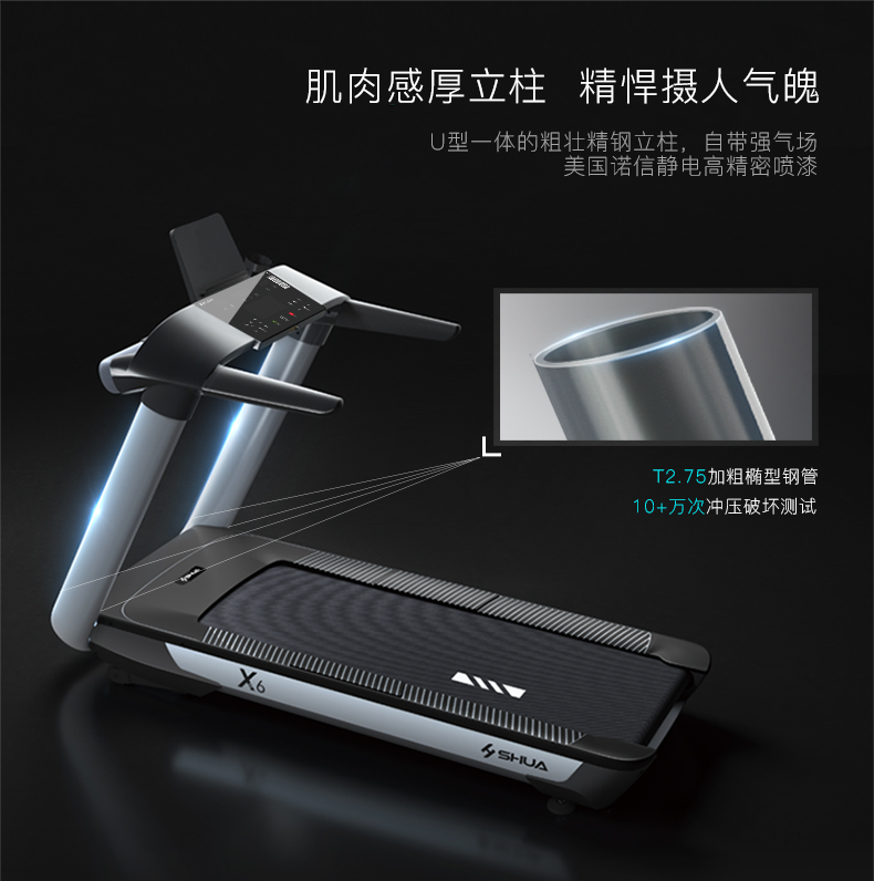 zoty中欧体育官方网站体育推荐健身器材-舒华商用电动跑步机SH-T6500拥有10.1寸IPS高清触摸屏、Z型动感时尚外观设计、70×150mm精钢立柱机身、F级高效静音马达、520mm商用豪华跑带和35mm双层全跑台减震跑板等优势,让您享受科学跑步。