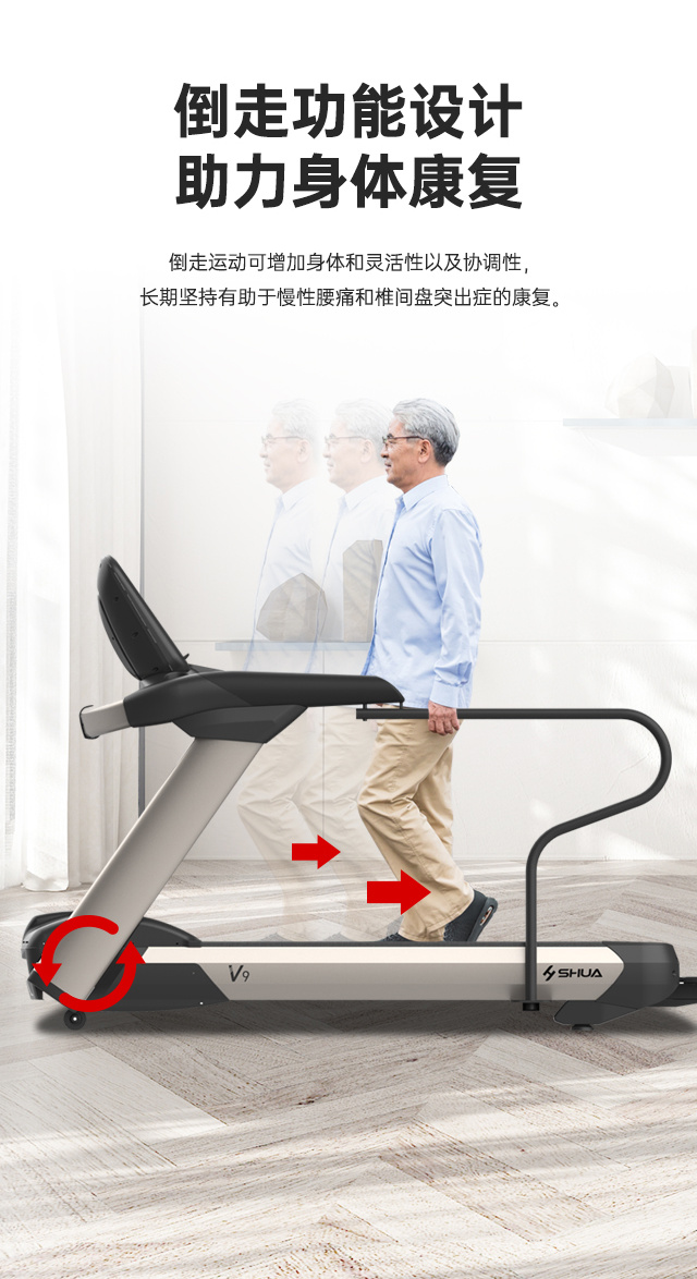 舒华多功能跑步机T56 SH-T5600-T2跑台尺寸是480×1200mm,持续马力是DC 1.5CHP(无刷电机)。
